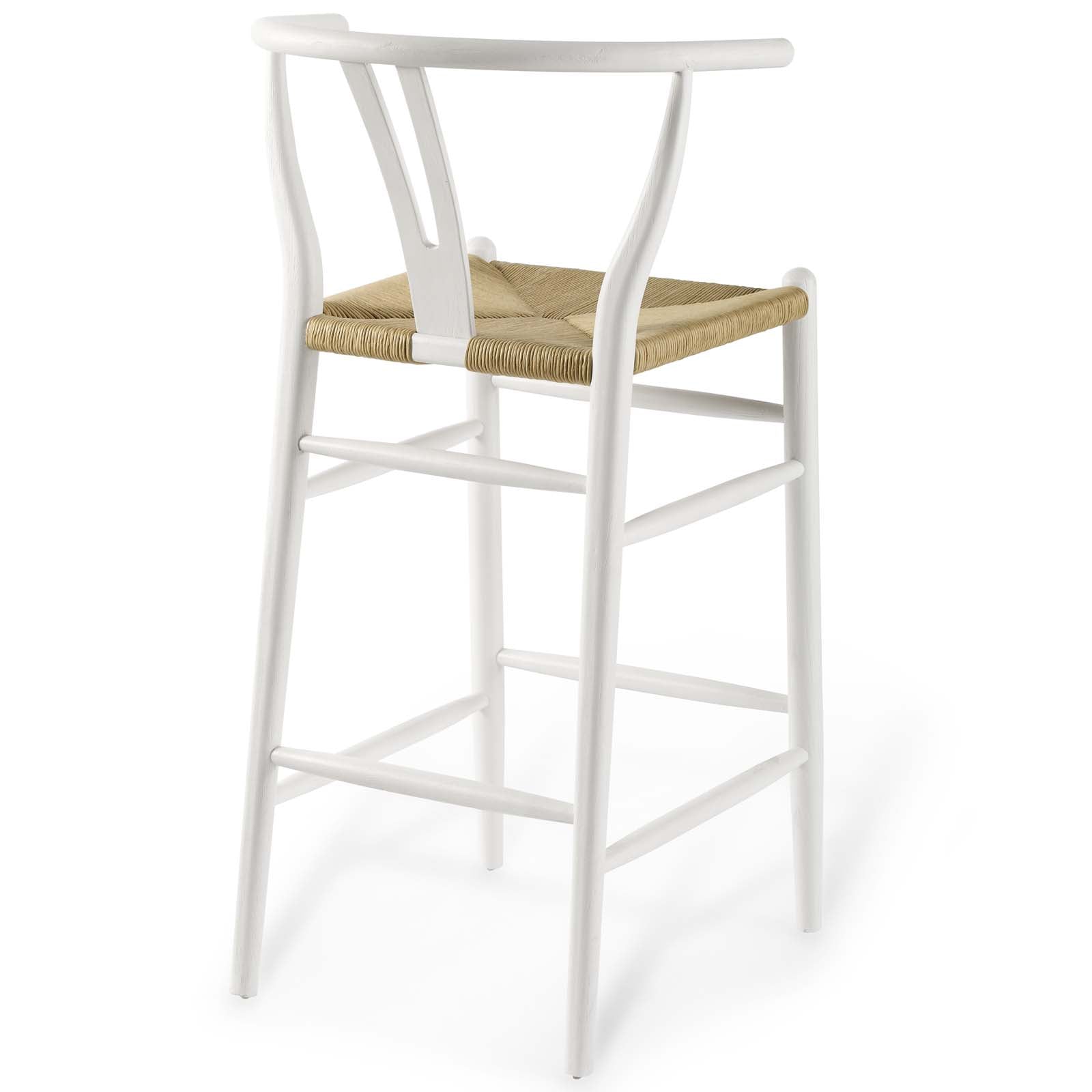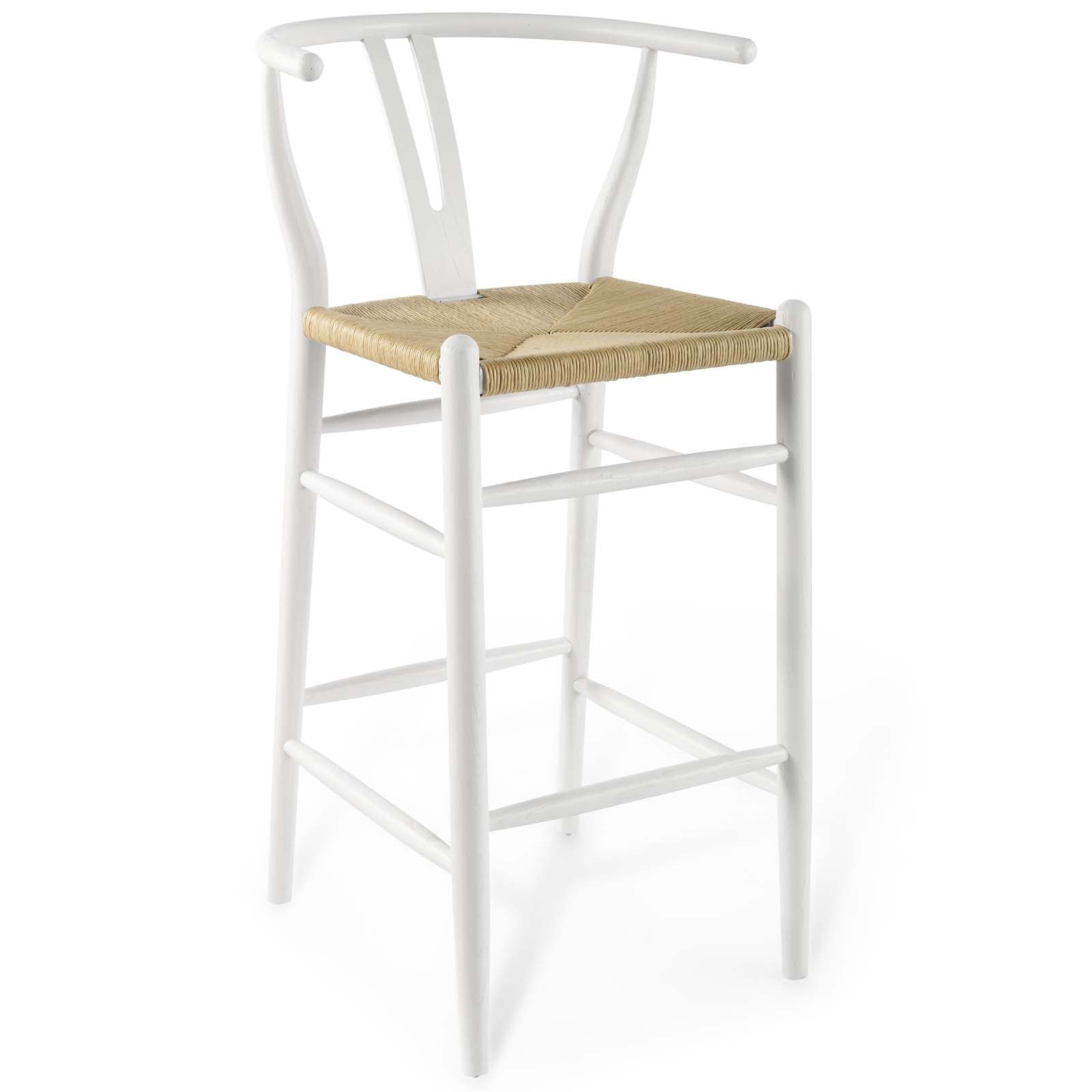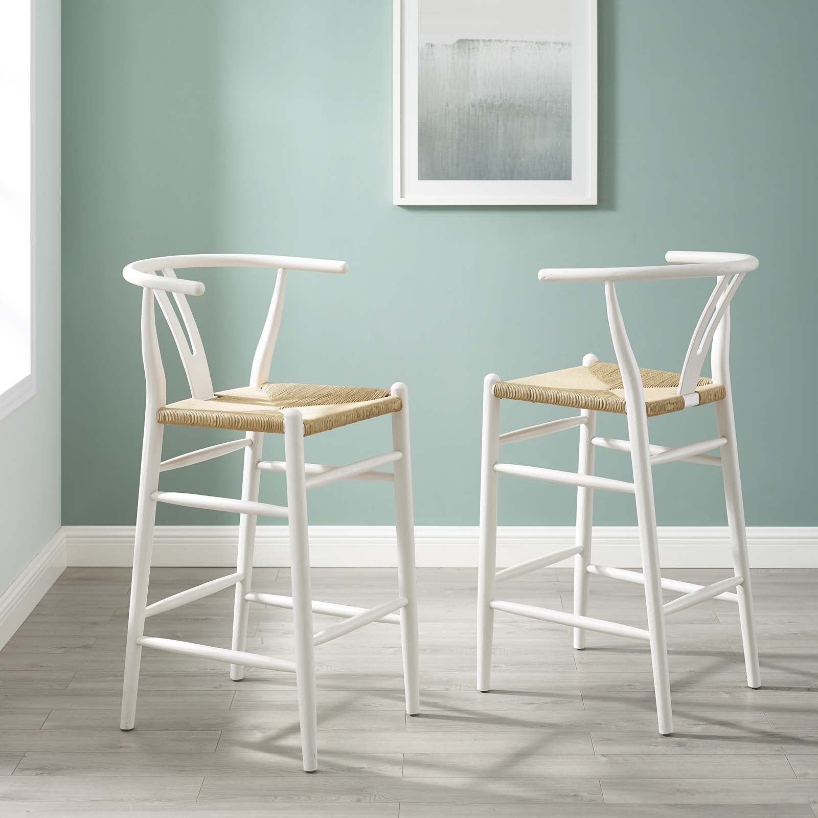 Rustic lines form the flowing frame of Amish Wood Bar Stool Set of 2. Created with a mid-century style, the Amish Bar Stool Set takes the minimalist style into an organic piece bringing natural beauty to your bistro and bar area. Amish features an elm wood half moon armrest, cutaway back, and foot bar supports. A woven paper rope seat ties in a solidly constructed wooden stool for your living room, lounge room, bistro, cafe, and bar area decor. Comes Fully Assembled. Bar Stool Weight Capacity: 331 lbs