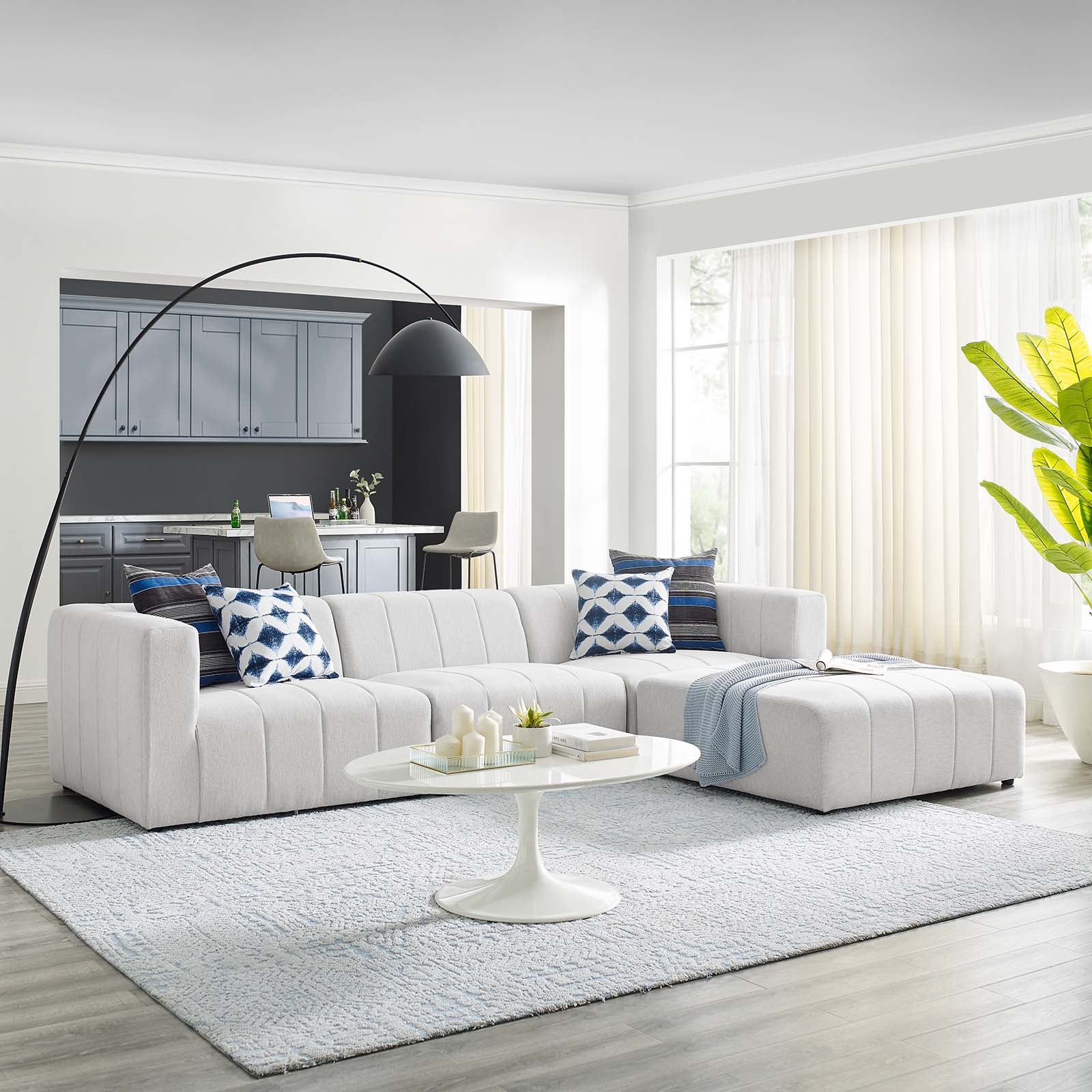 Bartlett Upholstered Fabric 4-Piece Sectional Sofa Ivory | Polyester by Modway
