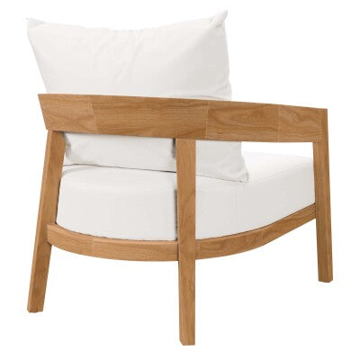Embrace warm weather with the Brisbane Teak Wood Outdoor Patio Furniture Set. Curved lines and a clean design create contemporary charm that makes a statement on your porch, in your backyard, or poolside. Perfect for al fresco entertaining or relaxing by the pool, the Brisbane Outdoor Patio Furniture Collection is crafted with durable Premium Grade A teak wood and complete with comfortable cushions covered in machine washable sun, stain, water, and fade resistant Sunproof® fabric covers. Includes non-marking plastic foot glides. Patio Set Includes: 2 Armchairs, 1 Side Table Set Includes: One - Brisbane Side Table Two - Brisbane Armchair