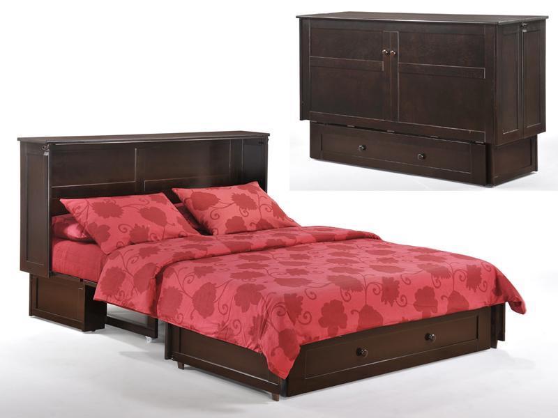 This hand-crafted Clover cabinet bed in dark chocolate finish by Night & Day Furniture is a credenza style cabinet that features an easy-to-use top surface. The sleek design and clean exterior look allows this cabinet bed to seamlessly fit into any design layout. The dark chocolate finish on premium select wood provides a more refined, modern look.