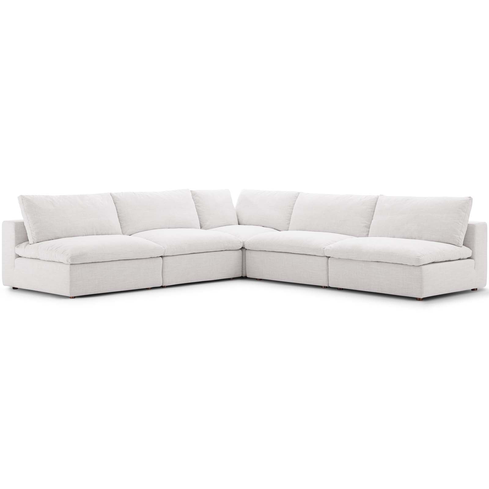 A haven for cozy relaxation, Commix features plush comfort, a clean-lined design, and a spacious profile. The Commix Down-Filled Overstuffed Modular Sectional makes an attractive statement in any home. Upholstered in polyester fabric that grants a luxe linen texture, this contemporary sectional comes generously padded with down feather and cotton cushions for a luxurious sink-in feel. Commix comes with a solid wood frame with foam padded seats, making this sectional sofa collection perfect for the living room, family room, or game room. Includes non-marking foot glides. Weight Capacity: 331 lbs.