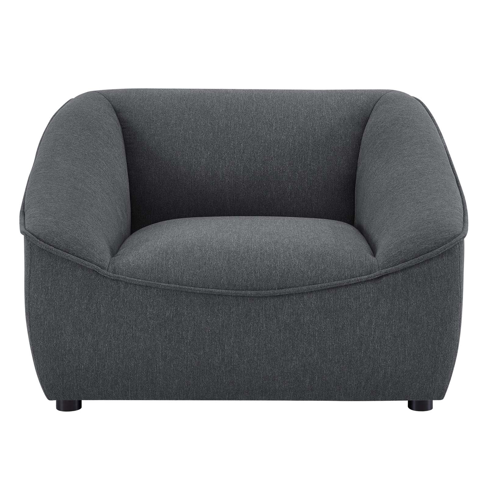 Indulge in cozy relaxation in the comfort of your own home with the Comprise Upholstered Armchair. A casual design accented with French piping details, this lounge chair features dense foam padding, soft polyester upholstery and a pocket coil spring system to offer a premium seating experience. Solidly constructed with solid wood and plywood, this upholstered armchair rests atop sturdy rubberwood legs. Create a custom living room or lounge area with the Comprise Living Room Furniture Collection. Chair Weight Capacity: 400 lbs. Set Includes: One - Comprise Armchair