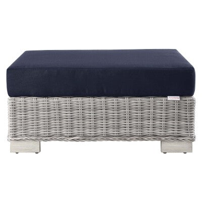 Enjoy fresh air and alfresco relaxation with the Conway Outdoor Patio Wicker Rattan 5-Piece Furniture Set. Wrapped in UV-resistant light gray synthetic wicker rattan, this patio furniture set boasts organic texture and a neutral hue that brings a calming presence to your outdoor space. The frames of this outdoor furniture set are crafted with durable powder-coated aluminum and rest on L-shaped legs with plastic foot glides. Thick foam padded cushions covered with removable, all-weather polyester fabric covers offer a comfortable seat and affix securely to the lounge chair with cord tension attachments. Trending aesthetics and a classic design define this outdoor patio furniture collection making it a beautiful addition to any outdoor space including the backyard, patio, porch, balcony, or poolside. Assembly required. Set Includes: Sofa, Loveseat, Armchair, Ottoman, Storage Coffee Table Set Includes: One - Conway 45" Coffee Table One - Conway Armchair One - Conway Loveseat One - Conway Ottoman One - Conway Sofa