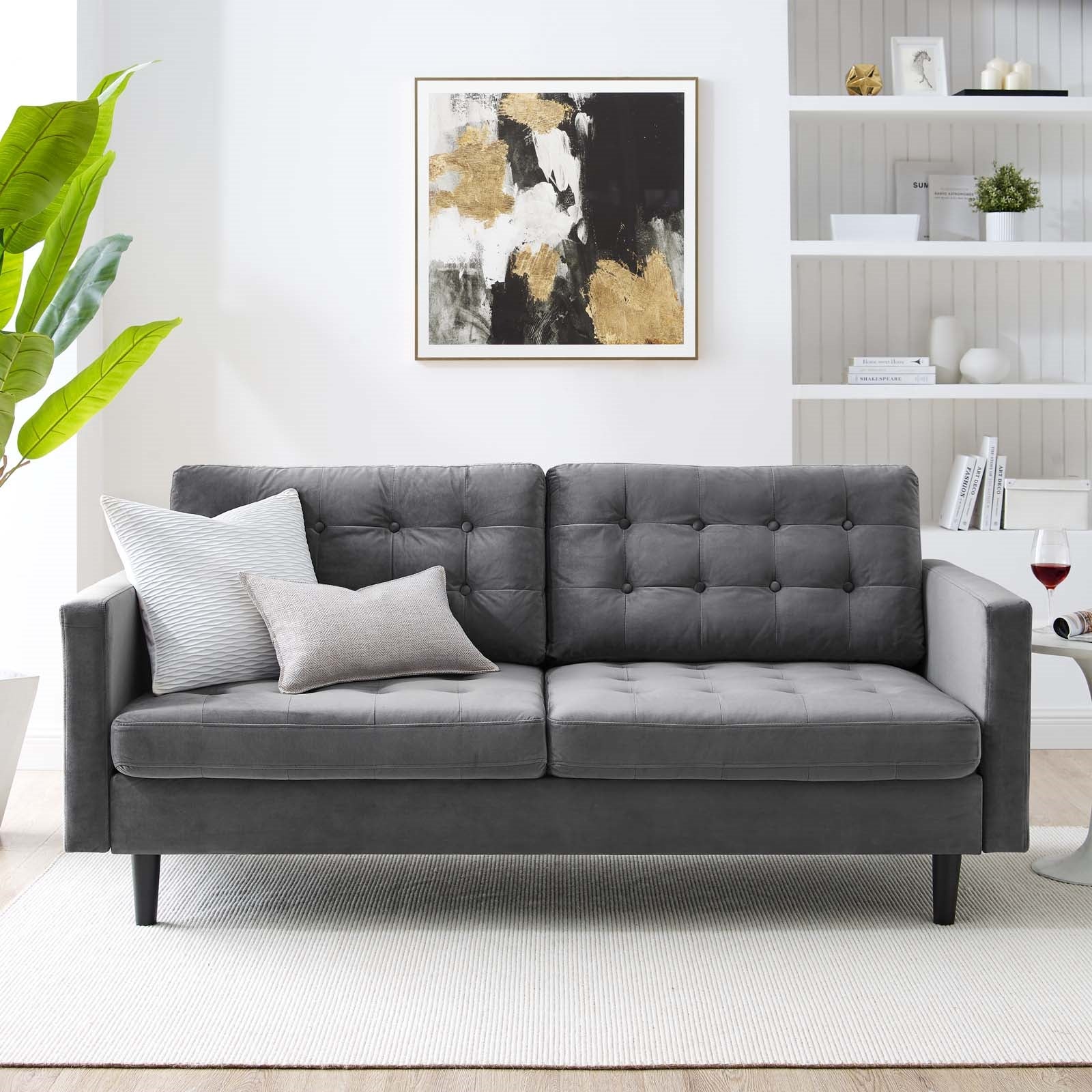 Exalt Tufted Performance Velvet Sofa in Gray by Modway