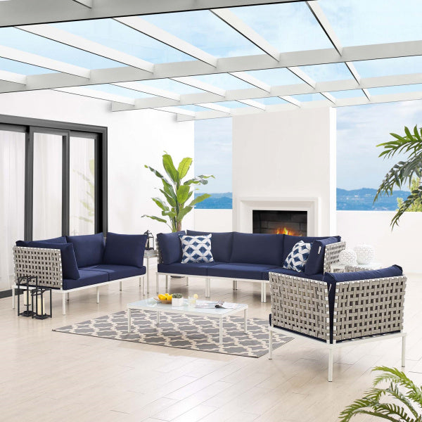 Harmony 8-Piece Sunbrella Basket Weave Outdoor Patio Aluminum Seating Set by Modway
