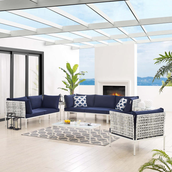 Harmony 8-Piece Sunbrella Basket Weave Outdoor Patio Aluminum Seating Setby Modway