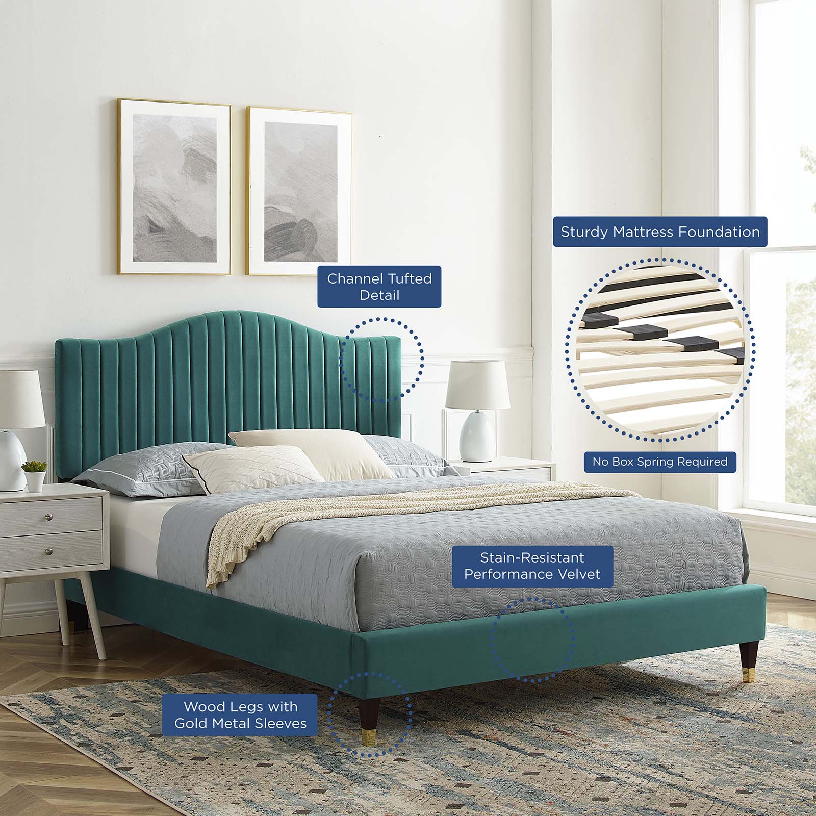 Juniper Channel Tufted Performance Velvet King Platform Bed in Teal by Modway