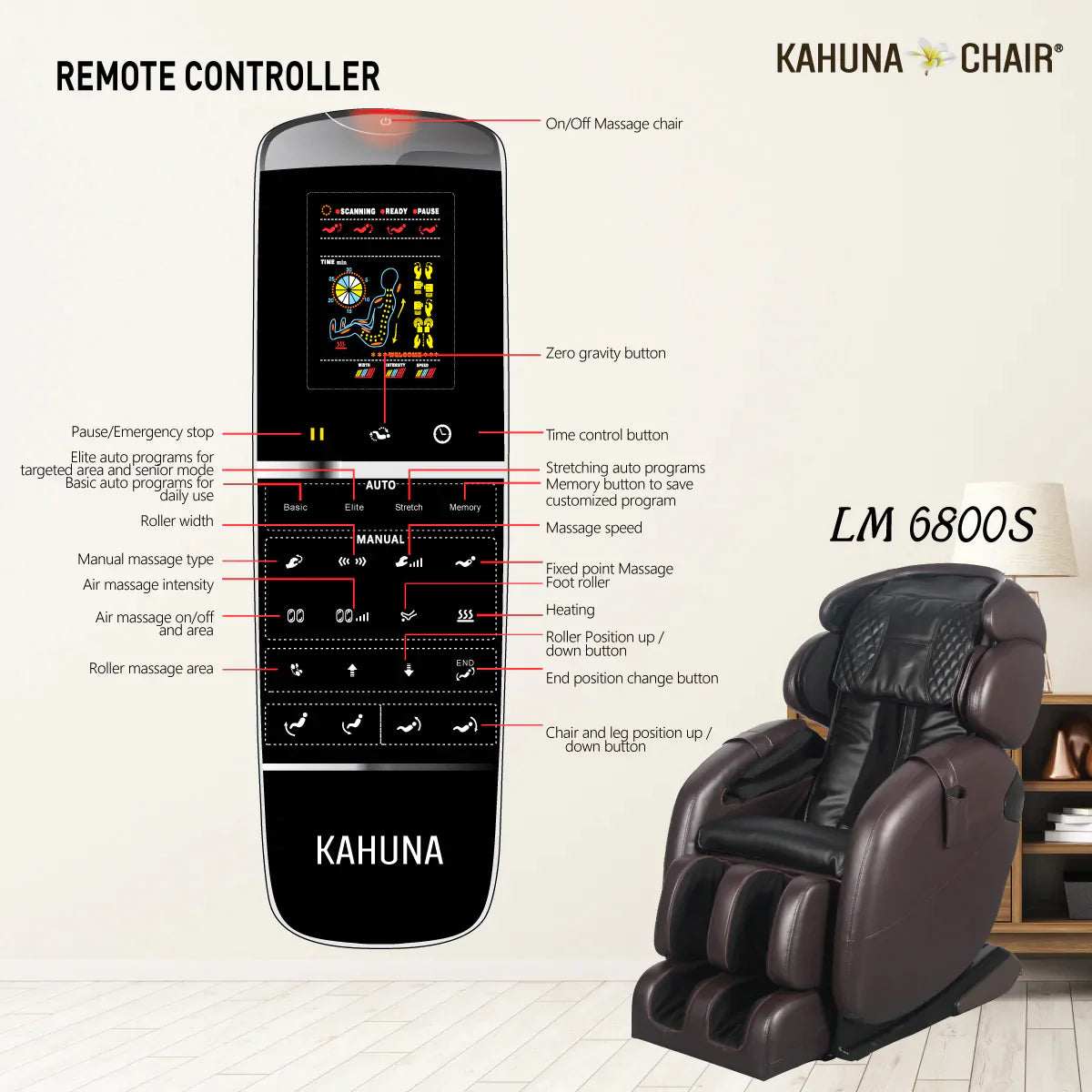 Space-Saving, Zero-Gravity Full-body L-Track Kahuna Massage Chair with heating therapy - LM-6800S