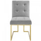 Maximize your dining room decor with Privy. A glam deco dining chair, Privy features soft polyester fabric upholstery for a streamlined modern look. This modern dining chair rests atop a sleek gold stainless steel geometric base that will elevate your dining experience.