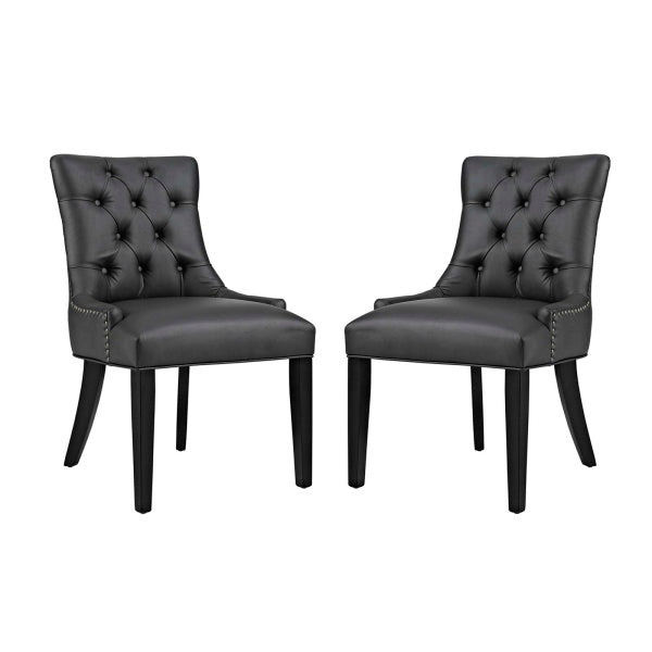 Fashioned with a chic and elegant look, Regent features finely tufted buttons, studded nailhead trim, and a regal seat generously padded in foam and upholstered in vinyl. Regent comes with non-marking foot caps, tapered wood legs, and works well in both modern and traditional dining rooms.