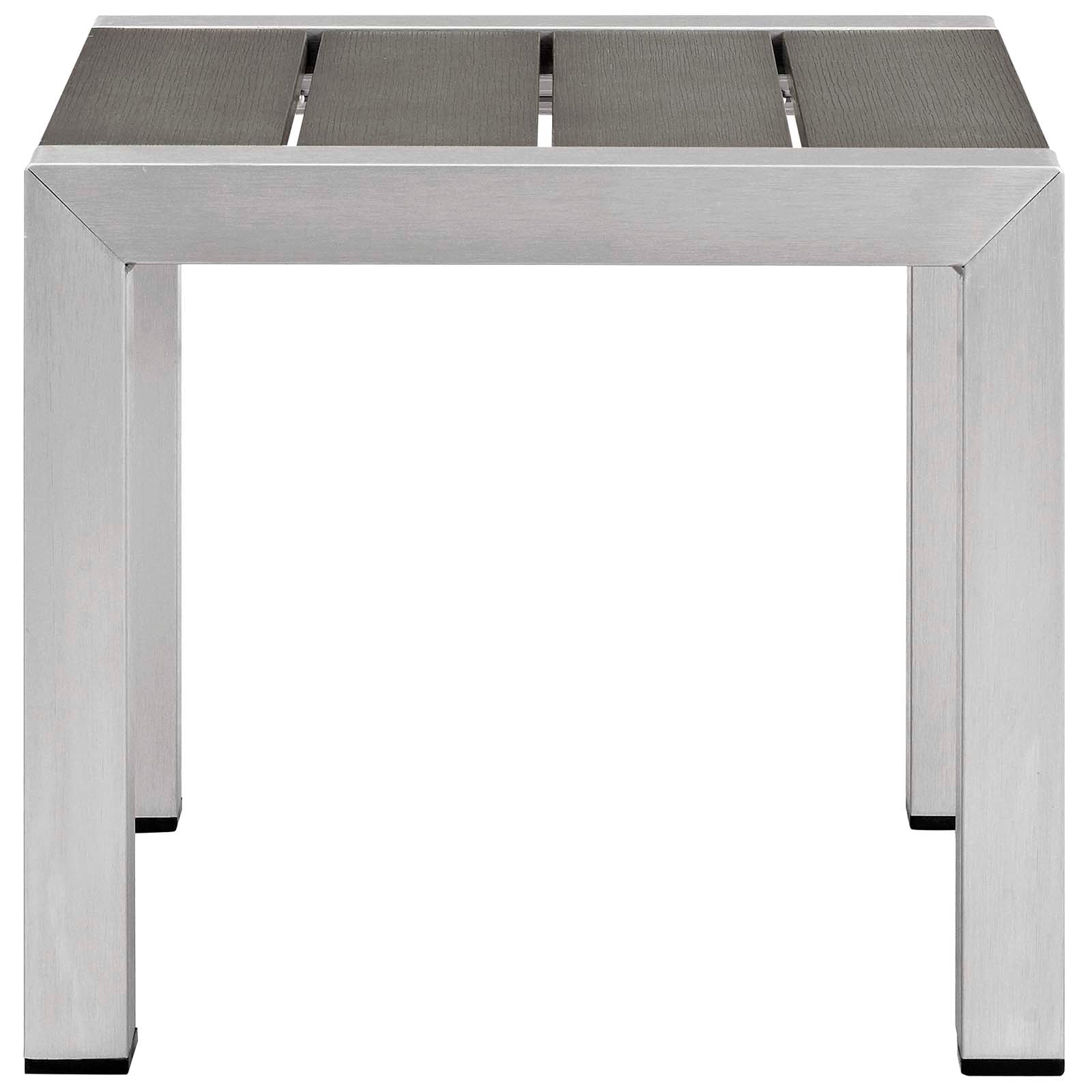 Enjoy your patio or backyard leisure time with the strong and durable Shore Aluminum 3 Piece Outdoor Patio Furniture Set. Made with anodized brushed aluminum frames and non-marking black plastic foot caps, Shore comes outfitted with resilient Sunbrella® fabric canvas cushions tested to last through all weather conditions. The Shore Outdoor Aluminum Outdoor Patio Set complements your casual gatherings with a look and functionality you can rely on. Set Includes: 2 Armless Chairs, 1 Side Table