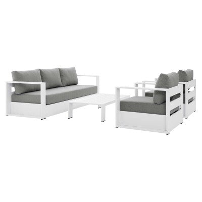 Enliven your alfresco spaces with the Tahoe Aluminum 4-Piece Outdoor Patio Set. This modern outdoor patio set includes two armchairs, a sofa, and a coffee table, crafted with durable powder-coated aluminum, dispensing contemporary elegance in your outdoor lounge spaces. The Tahoe 4-Piece Patio Set is perfect for poolside lounging with a sunproof, water-resistant fabric-covered seat and backrest. With dense foam padding for sustaining comfort and removable, stain-resistant cushions on the sofa and armchairs, this patio set is low maintenance and high performing. A durable patio set, Tahoe comes with easy-to-follow assembly instructions and features non-marking foot glides to protect your deck or patio floor. Weight Capacity - Chair: 331 lbs. Sofa: 993 lbs. Set Includes: One - Tahoe Powder Coffe Table One - Tahoe Powder Sofa Two - Tahoe Powder Armchair