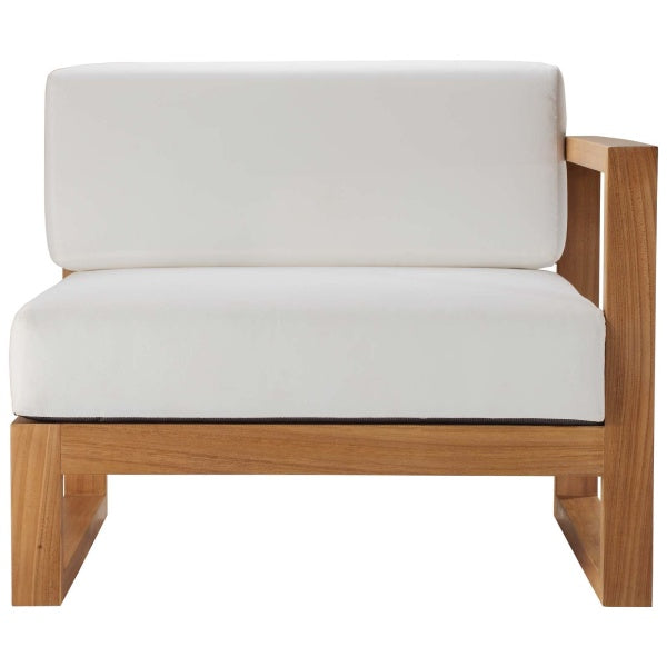 Refresh your outdoor décor with the Upland Teak Wood Outdoor Patio Furniture Collection. Boldly designed with eye-catching appeal, the Upland Outdoor Patio Teak Wood Right-Arm Chair is made of solid teak wood and solidly build construction. The perfect choice for balconies, backyards, patios, gazebos, poolside or garden spaces, this outdoor patio sectional sofa piece creates a custom seating experience with its modular design. Known for its ability to withstand extreme weather conditions, teak is the wood selection of choice for long-lasting outdoor furnishings. Rich in modern style, the Upland Outdoor Patio Sectional Sofa Collection opens up a variety of configurations to suit any gathering. Assembly required.