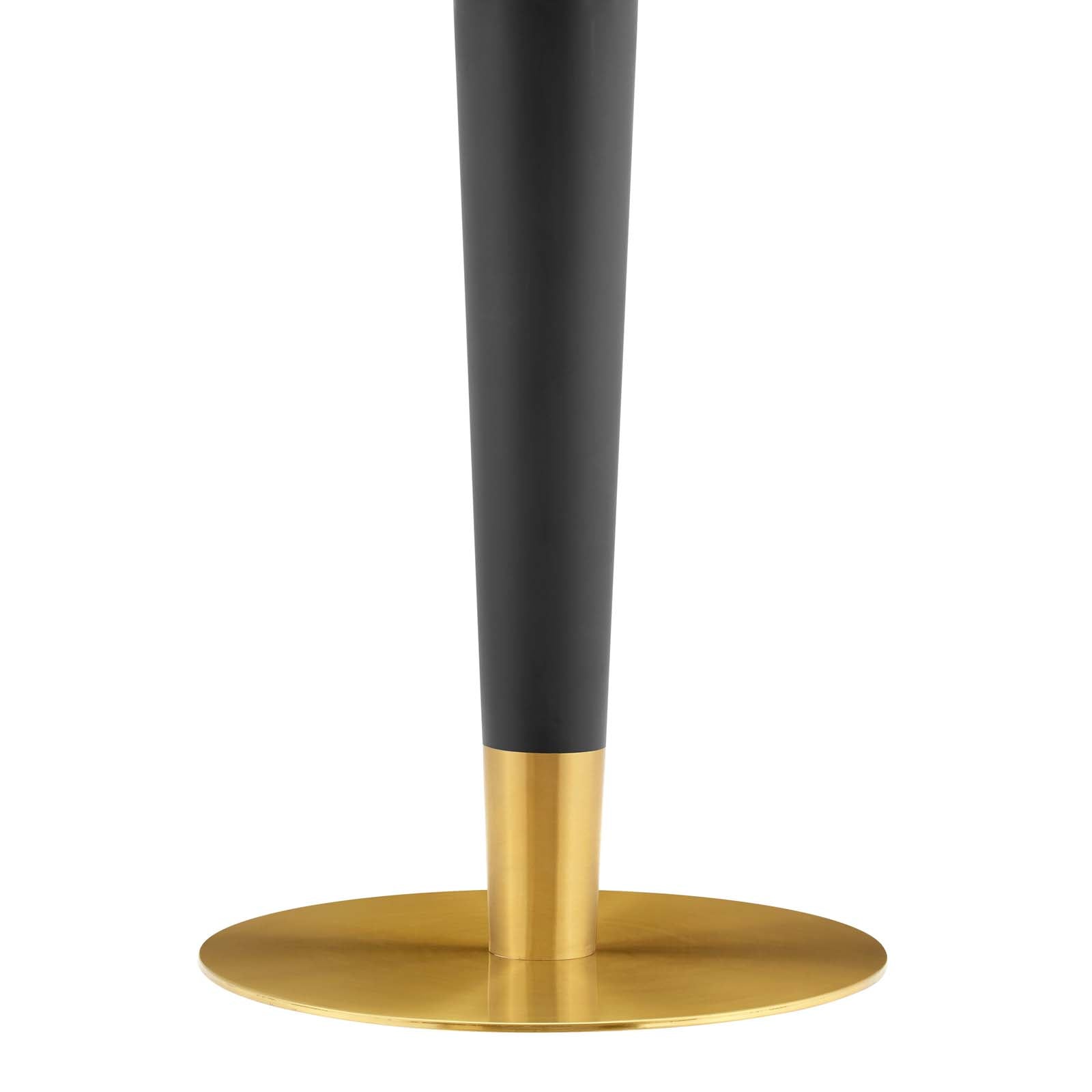 Gather family and friends for good food and conversation around the Zinque Dining Table. Bringing modern influence and mid-century inspiration to your dining space, this pedestal table reflects an organic shape. Perfect for entertaining or everyday dining, this dining table rests on a black and polished gold tapered base and features a 28" terrazzo tabletop. Non-marking ring to protect flooring.
