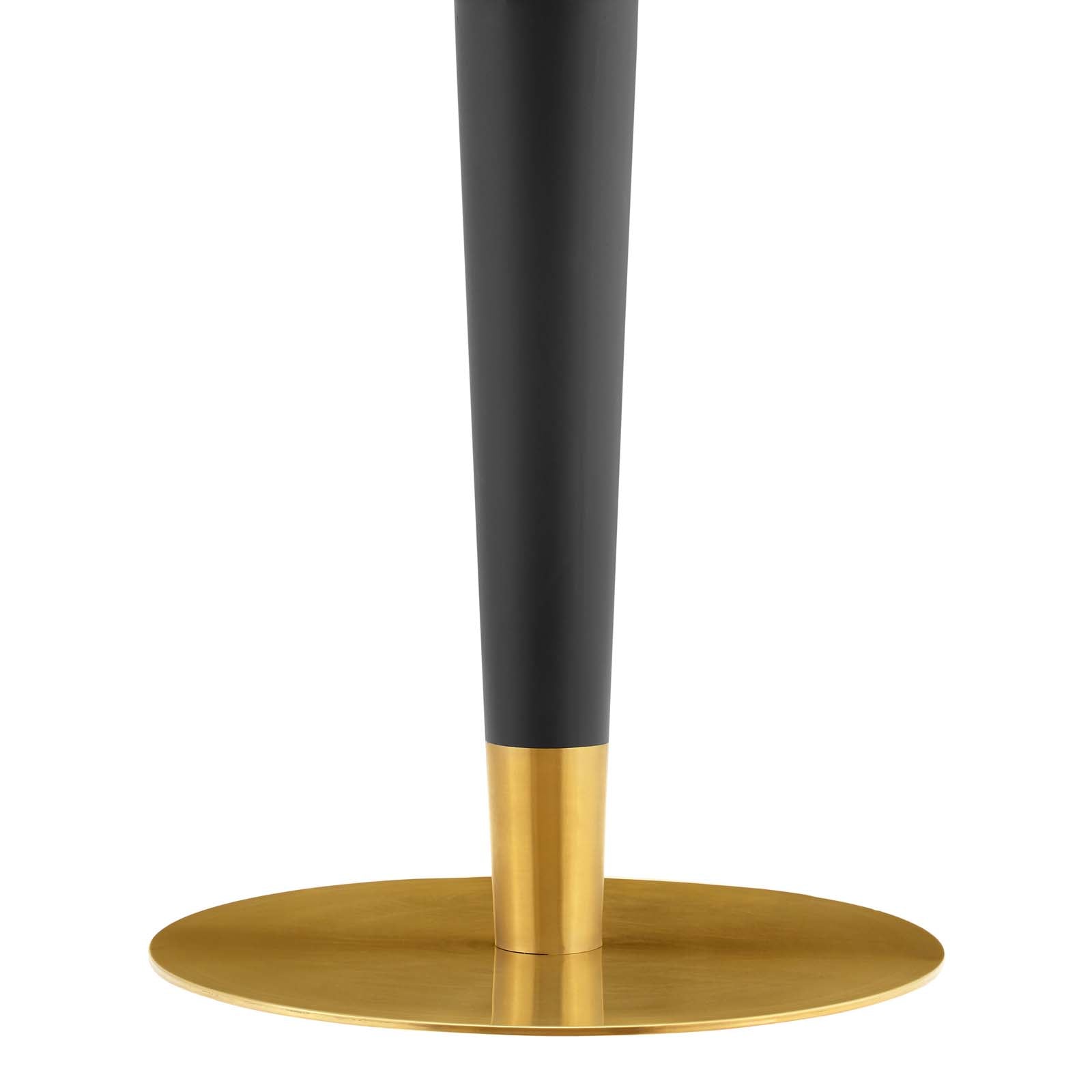 Gather family and friends for good food and conversation around the Zinque Dining Table. Bringing modern influence and mid-century inspiration to your dining space, this pedestal table reflects an organic shape. Perfect for entertaining or everyday dining, this dining table rests on a black and polished gold tapered base and features a 40" terrazzo tabletop. Non-marking ring to protect flooring. Assembly required.